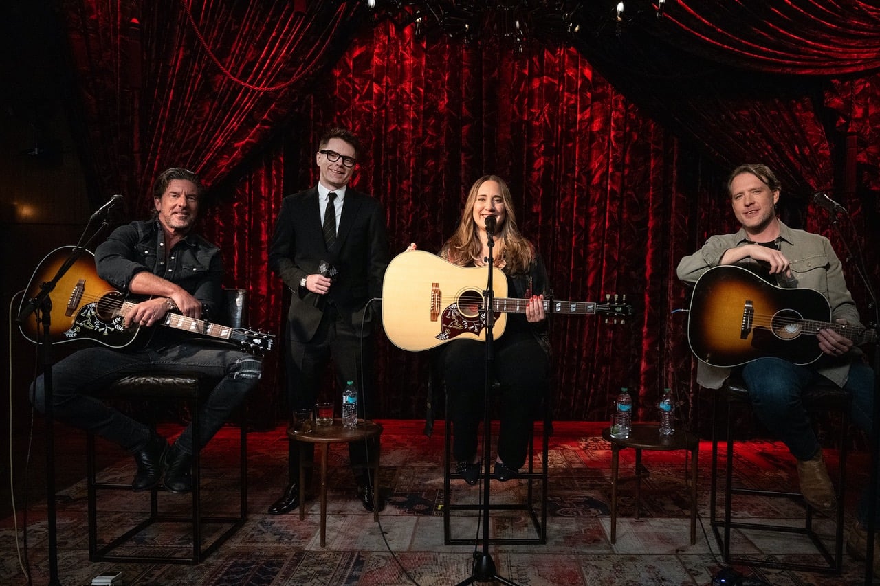 Pictured (L-R): the late Brett James, Bobby Bones, Kelly Archer and Matt Jenkins Following its debut as a live broadcast in movie theaters, the songwriter show Music Night is now expanding into streaming, with Episode 1 now available across major platforms …